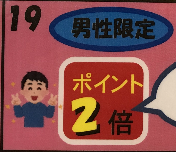 19日(月)は月一回の「メンズデー」です! 男性のお客様は『ポイント2倍』でお迎えしております!お誘い合わせてのご来場をお待ちしております♨️