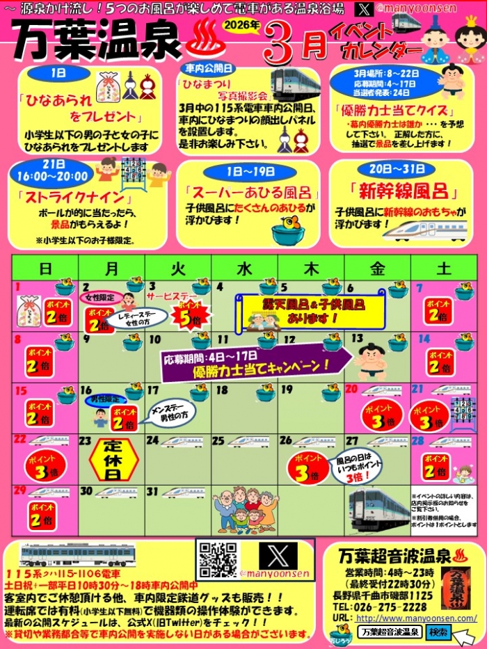 日帰り温泉なら長野県千曲市戸倉上山田温泉の電車がある万葉温泉 Copyright (C) 信州戸倉上山田温泉 万葉超音波温泉 All Rights Reserved.