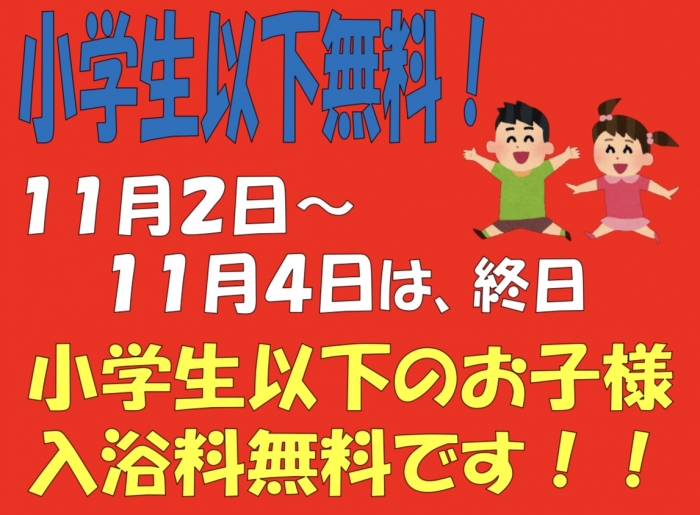 11月2.3.4日は『小学生以下のお子様入浴料無料』です❗️