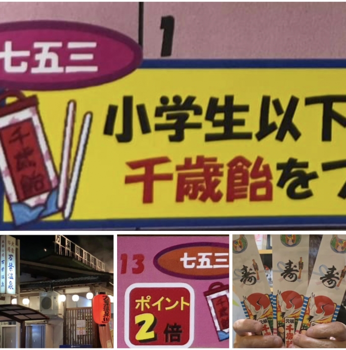 13日(日)の万葉超音波温泉は『生誕60周年企画・七五三特別プレゼント』です‼️ ご来場の小学生以下のお子様全員に『千歳飴を差し上げます』‼️お誘い合わせてのご来場をお待ちいたします♨️