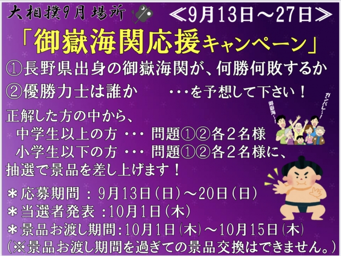 13日から「御嶽海関応援キャンペーン」開催です!