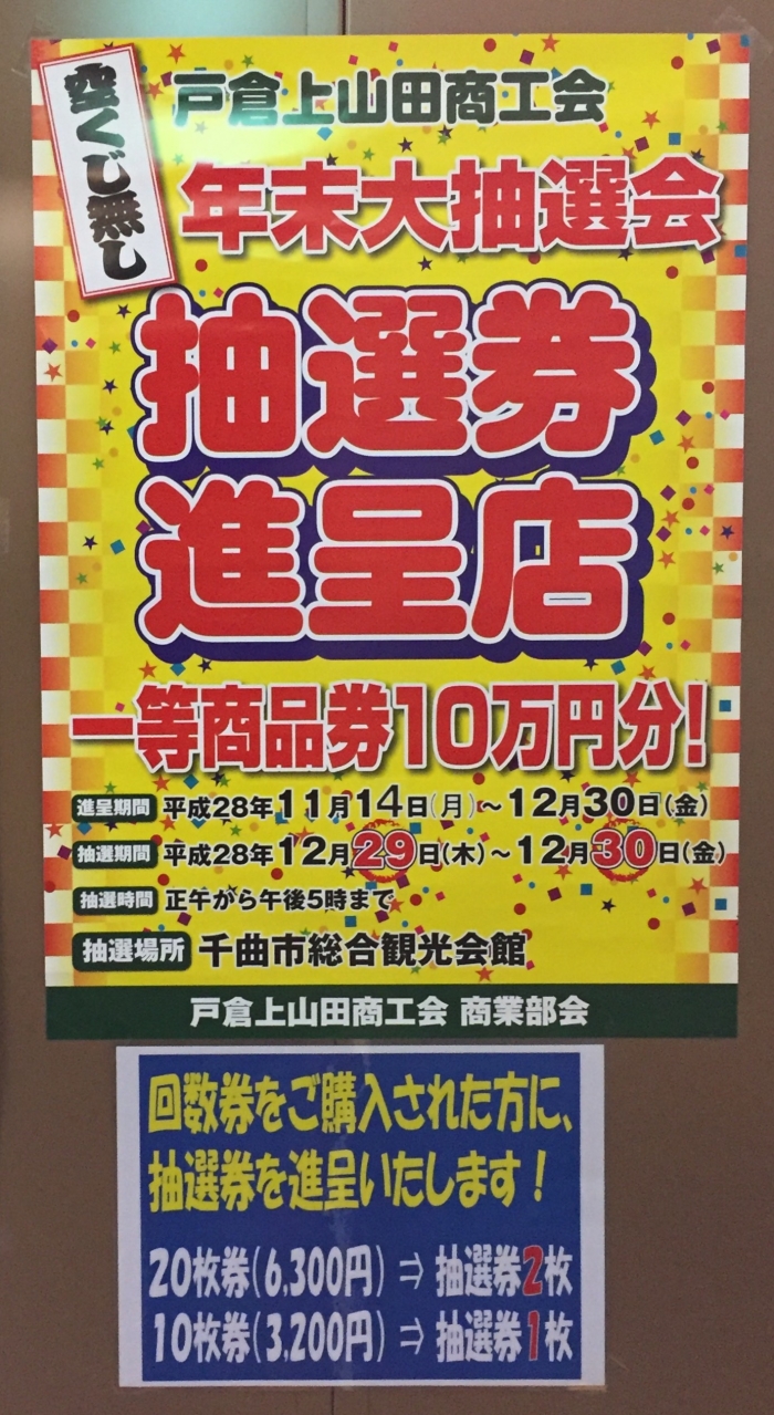 戸倉上山田商工会商業部会主催の『年末大抽選券会』の時期になりました。