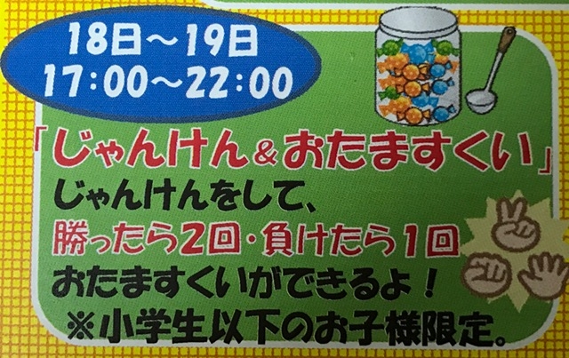 18日、19日は「じゃんけん&おたますくい」イベント開催です!