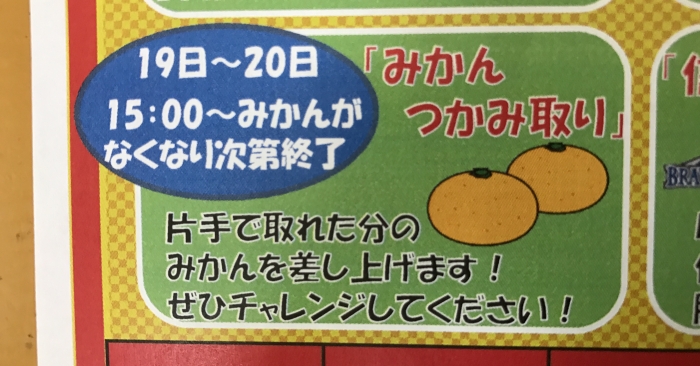 万葉温泉では19日・20日の15時〜『つかみ取り