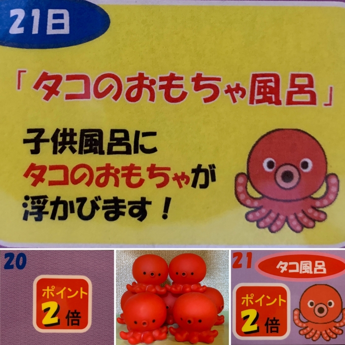 ※ 21日(日)は男女子ども風呂に"各100個のタコのおもちゃ"が浮かびます❗️