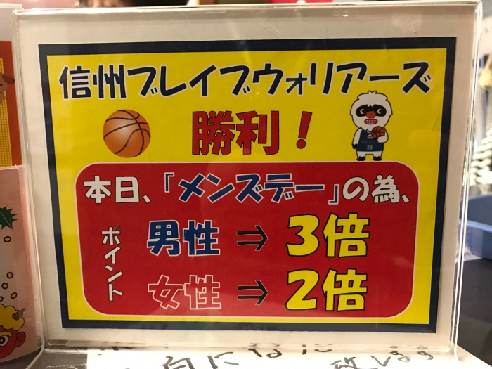 ◎男性は3倍デーといたします。「メンズデー優待日2倍+ウォリアーズ勝利ポイント」