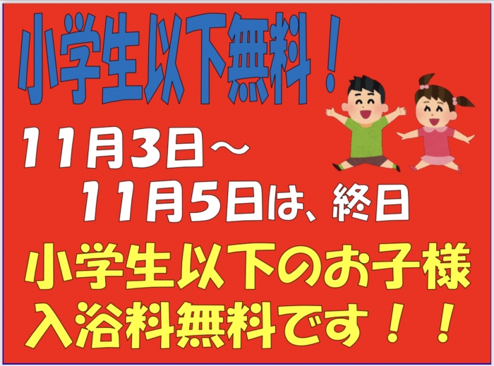 11月3日・4日・5日は『小学生以下無料入浴』開催です‼️