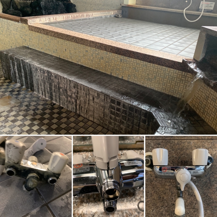 長い休業期間中にしか出来ない作業を、、、老朽化した蛇口・シャワーの交換、修理、磨き等々。浴槽は、、、最近湯花が増えています!天然温泉は気候により微妙に湯質が変化します!