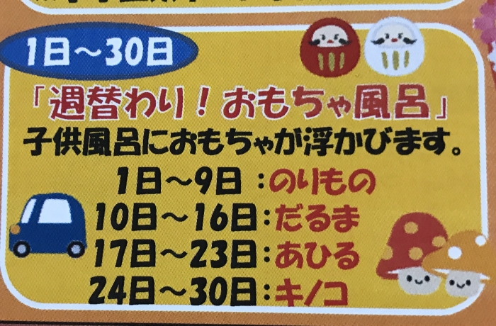 9月の『週替わり!おもちゃ風呂』は、