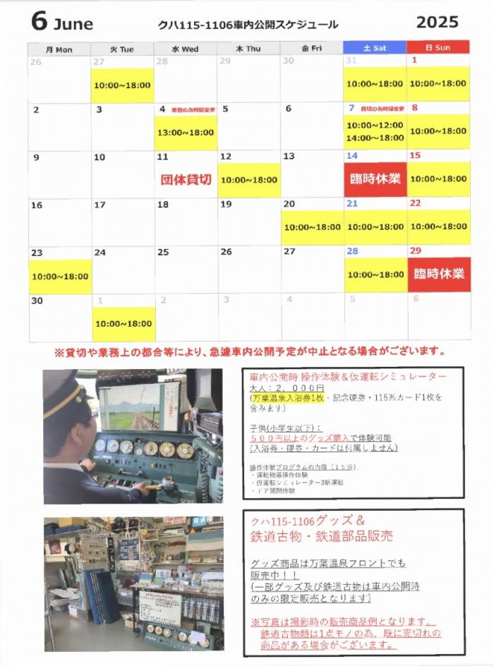 【クハ115-1106、6月車内公開スケジュールのお知らせ】