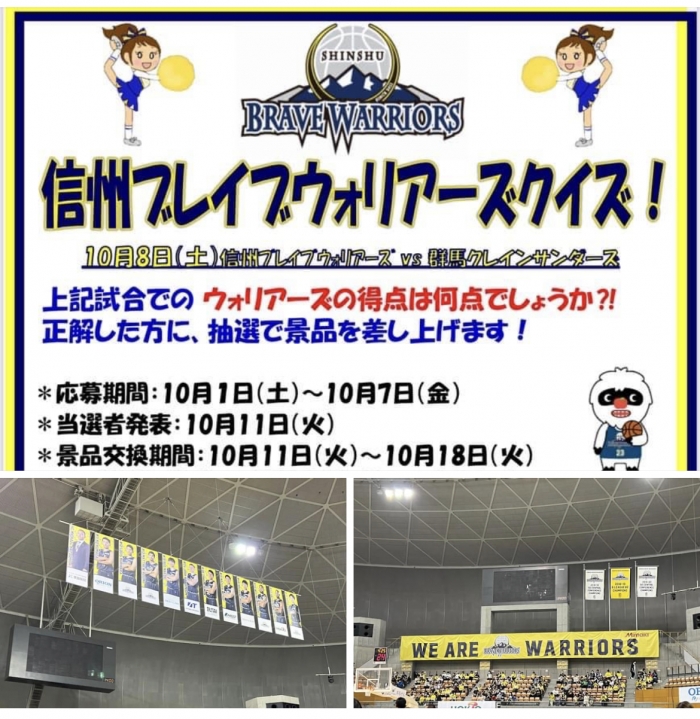 万葉超音波温泉♨️では先に開幕したB1リーグ所属の信州ブレイブウォリアーズに関わるクイズを7日締切で開催しています❗️正解されたお客様には抽選で信州ブレイブウォリアーズホームゲームチケット等の賞品を差し上げます‼️ご参加をお待ちしています‼️詳細はフロントにお尋ねください❗️万葉超音波温泉は信州ブレイブウォリアーズを応援しています‼️