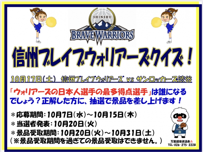 (申込期間)7日(水)〜15日(木)です!ご応募をお待ちしています!応募用紙は万葉超音波温泉ロビーに設置いたします。
