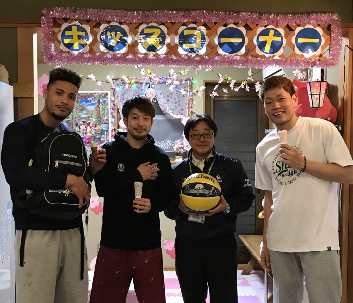 5日、バスケットボールBリーグ 信州ブレイブウォリアーズの#1 和田保彦選手、#9 高松勇介選手、#0 新城真司選手が来場してくれました。