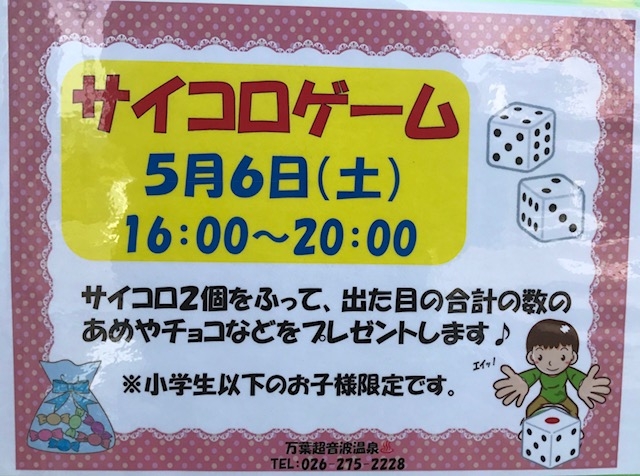6日の万葉温泉は『ポイント2倍デー』『サイコロゲーム』開催です‼︎
