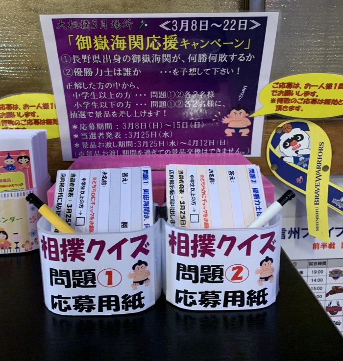 御嶽海関応援キャンペーン開催中です‼️今年の3月場所は異例の無観客場所ですが長野県出身の御嶽海関を応援しましょう‼️