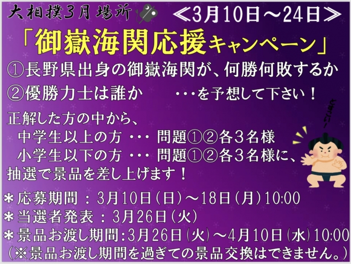 10日から『御嶽海関応援キャンペーン』開催です!